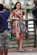 Leighton Meester and Clemence Posey are directed by Andrew McCarthy while filming scenes for "Gossip Girl" in Long Island City. Meester was spotted wearing a multi-colored floral dress, black high heels and a high waisted belt - August 9, 2010, New York.